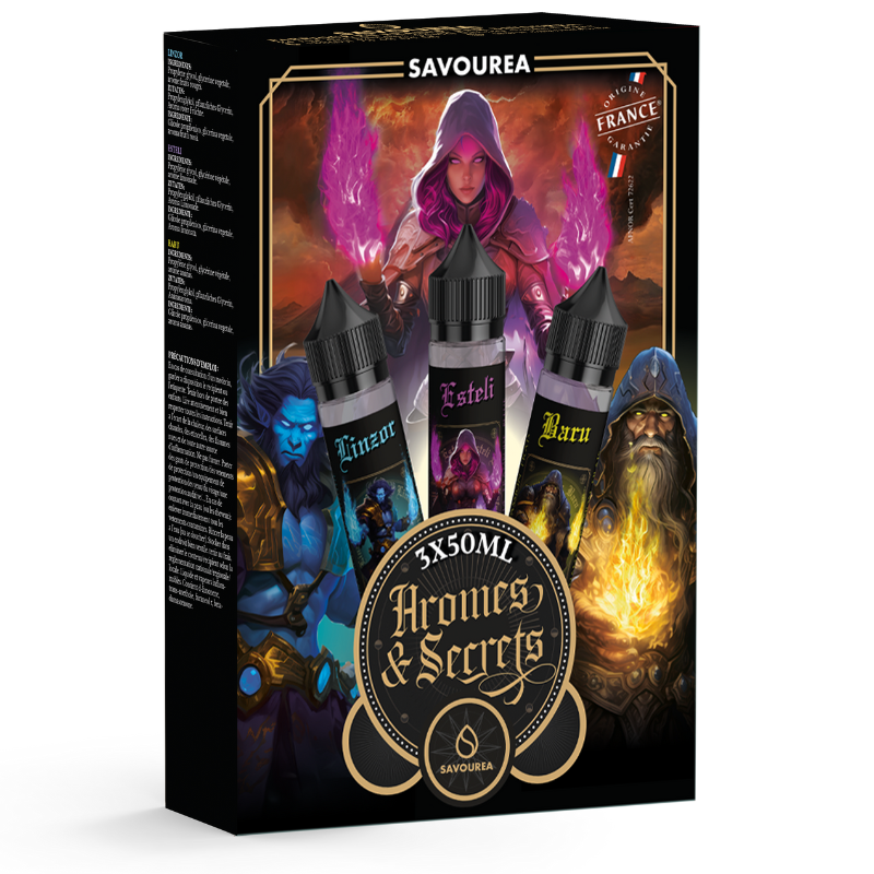 Afficher en grand Pack de 3 fioles : Linzor, Esteli et Baru de la gamme Arôme & Secrets d'une contenance chacune de 50ml.