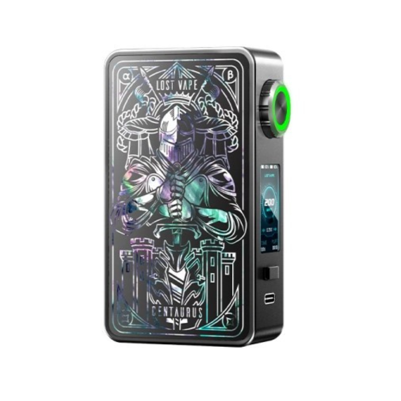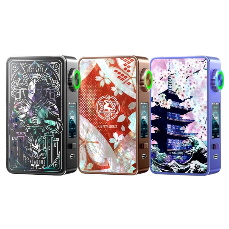 Lost Vape propose la Centaurus M200 qui fonctionne avec 2 accus 18650 (non fournis) et délivre une puissance maximum de 200W. Elle est équipée du chipset Quest 2.0, d'un écran couleur et d'une molette qui sert de commandes.