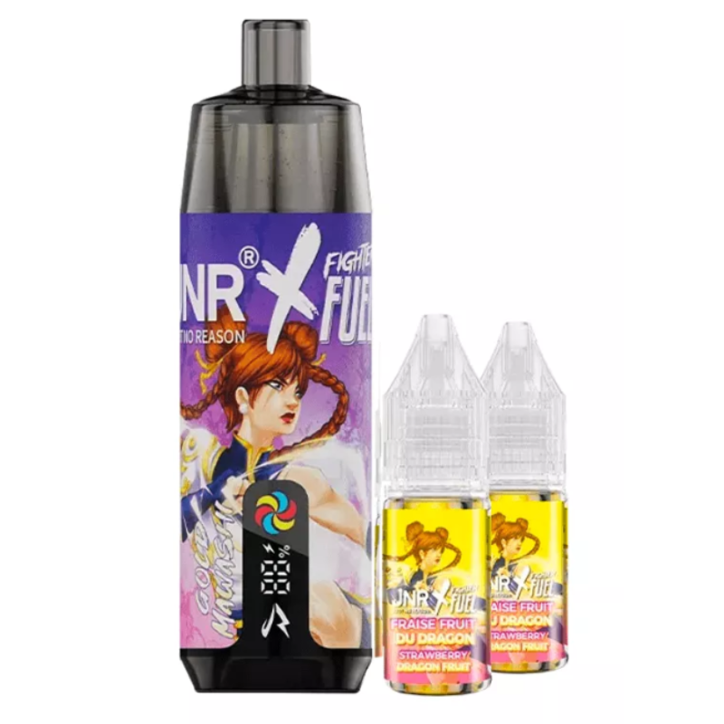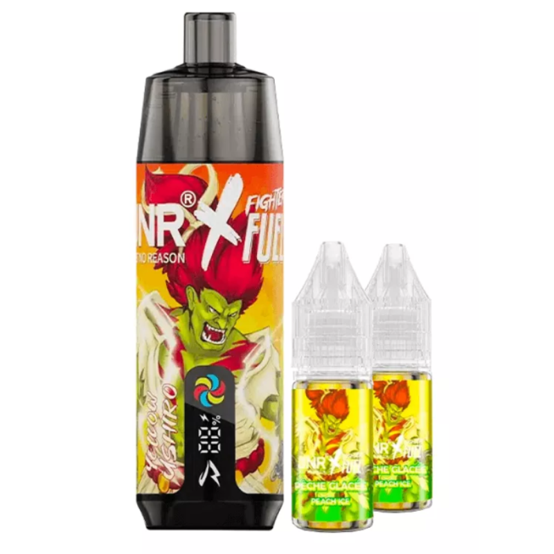 Le kit Shisha Plus 28K JNR x Fighter Fuel est un modèle hybride conçu pour une vape en inhalation directe (DL). Il est doté d’un réservoir de 10ml prérempli à 2ml, accompagné de deux fioles de 10ml en 20mg de sels de nicotine, permettant d’atteindre environ 28 000 bouffées.