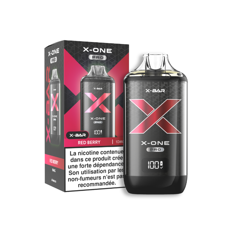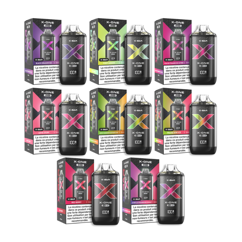 Le kit X-One Pro est un pod rechargeable composé d’une batterie, d’un pod prérempli de 2 ml et d’un pod réservoir de 10 ml dosés à 10mg de sels de nicotine. Il permet une utilisation pouvant atteindre environ 15 000 bouffées.
