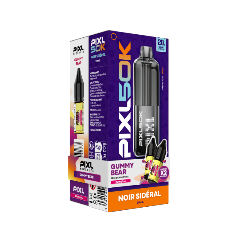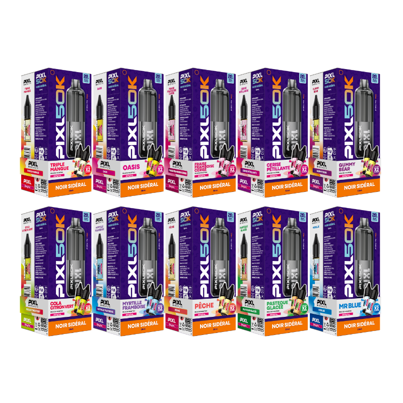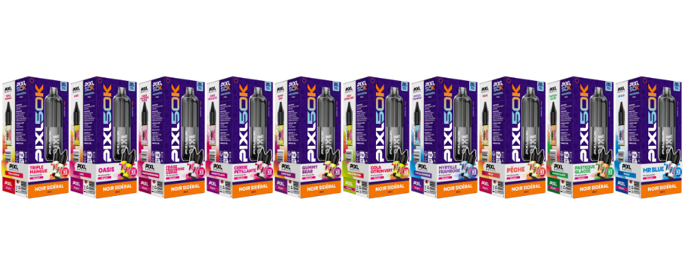 Le kit PIXL 50K est un dispositif de type pod équipé d’une batterie intégrée de 850 mAh, rechargeable via un port USB-C (câble non fourni).