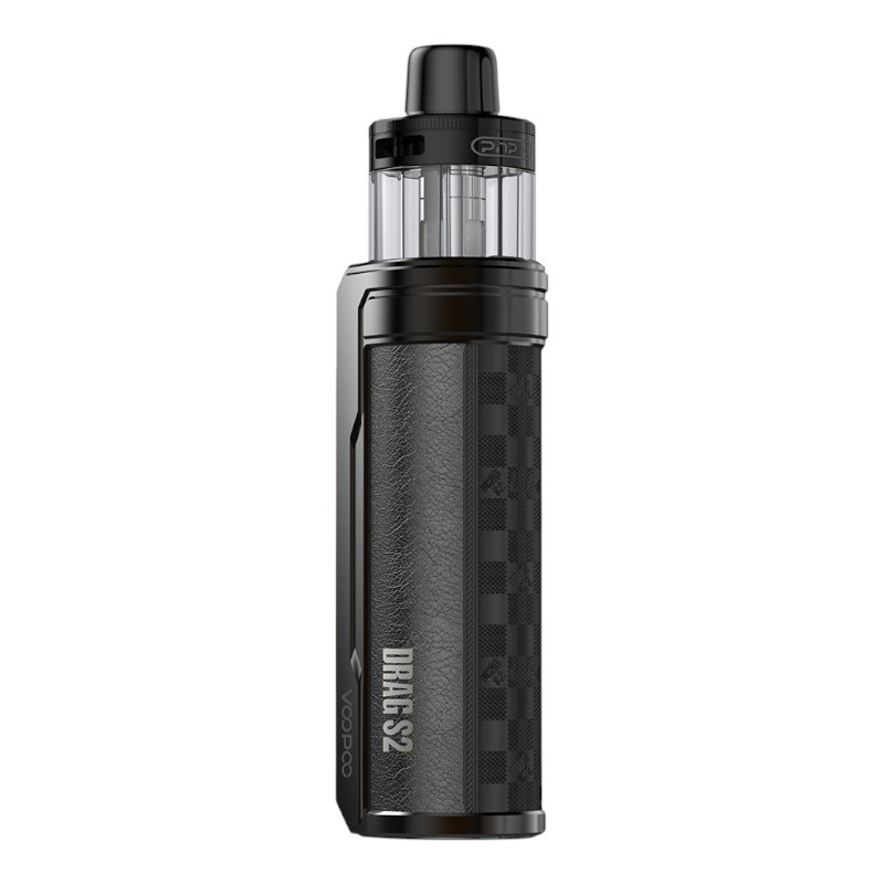 Le kit Drag S2 Pod est entièrement conçu en alliage de zinc avec un revêtement en simili cuir et dispose de dimensions de 122 x 32,8 x 28,6 mm.