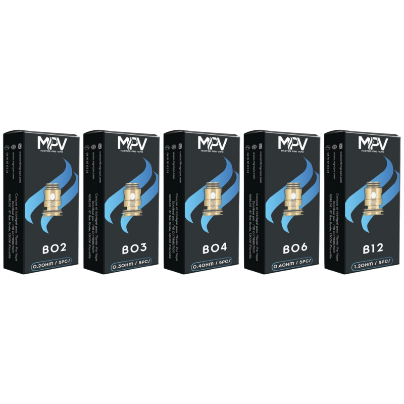 Pack de 5 résistances serie B de la marque MPV compatible avec plusieurs modèles d'atomiseurs.