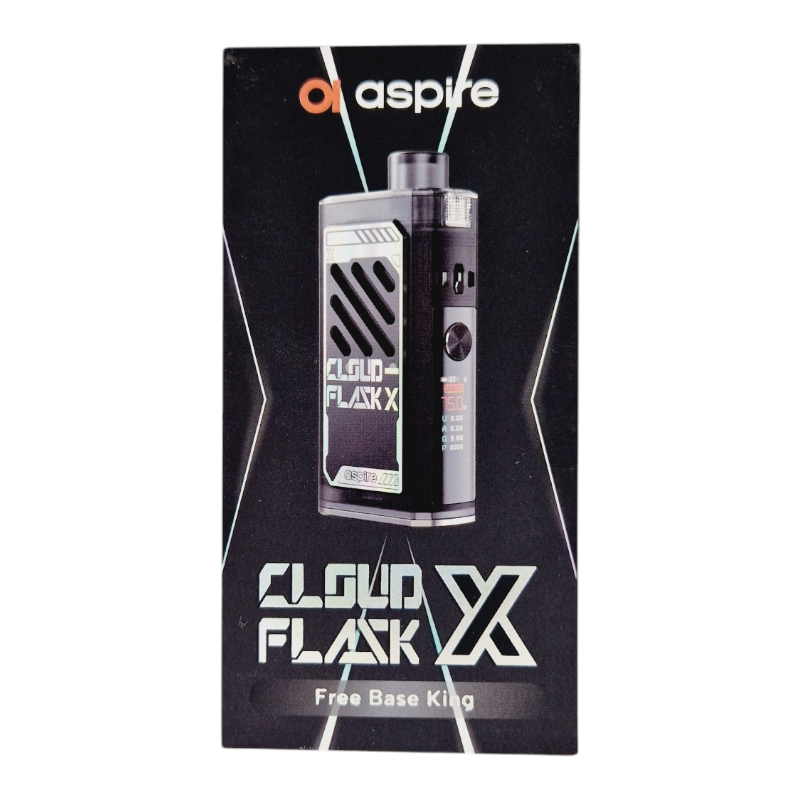Aspire présente son kit Cloudflask X Pod qui peut délivrer une puissance de 75W et fonctionne avec un accu au format 18650 (non fournis). Il dispose d'un écran de 0,96" sur le côté qui permet d'ajuster la puissance et de voir le pourcentage de batterie restant.