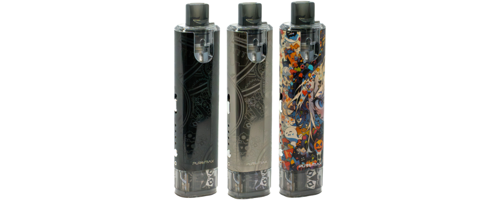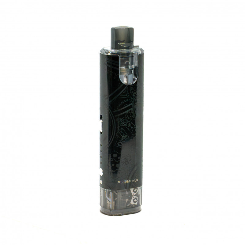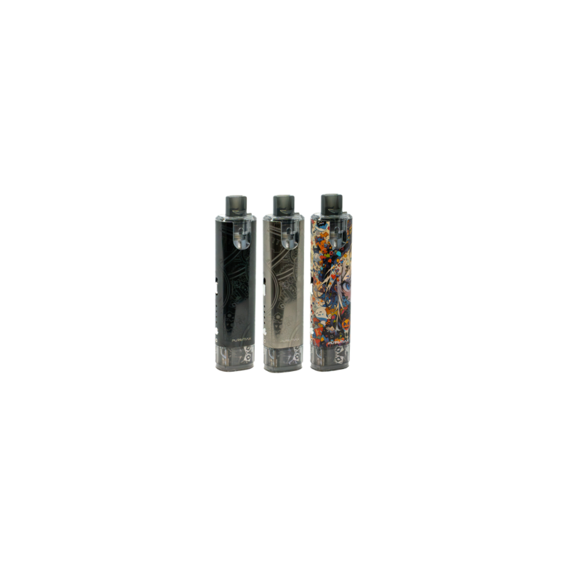 Le kit PureMax PX Pro dispose d’une puissance maximale de 25W et d’une batterie intégrée de 1050mAh. Sans écran, il permet de régler la puissance sur quatre niveaux. Il fonctionne avec une cartouche de 2ml à résistance intégrée et intègre une protection anti-dry hit, désactivant l’appareil lorsque le coton est insuffisamment imbibé.