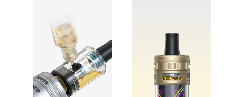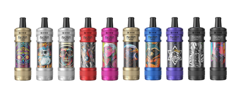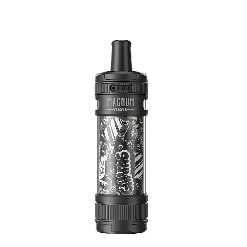 La cartouche du Magnum Nano a une capacité de 6ml. Le remplissage s’effectue par le côté, une fenêtre permet de visualiser le niveau de e-liquide, l’airflow se règle via une bague rotative pour une vape DL ou RDL.