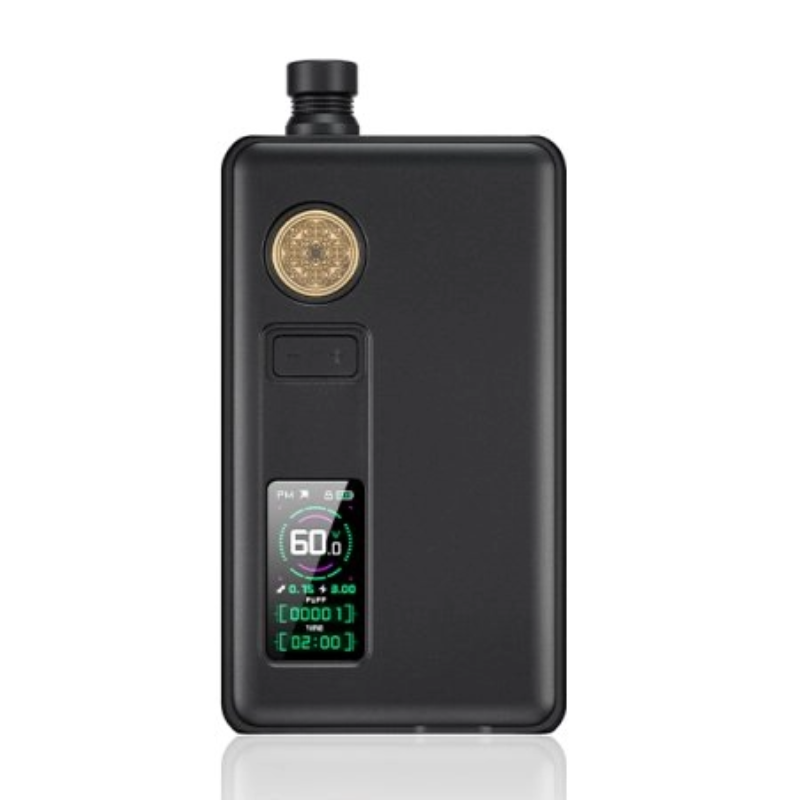 Le kit DotAio V3 de Dotmod fonctionne avec un accu 18650 (non fourni) et peut atteindre une puissance maximale de 80W. Elle permet une vape MTL ou DL. Sa cartouche intégrée propose une contenance de 3,7ml, et un réservoir de 4ml peut également être utilisé. L’appareil dispose d’un écran TFT de 0,96", qui permet un accès aux paramètres principaux et pouvant être personnalisé via un ordinateur.