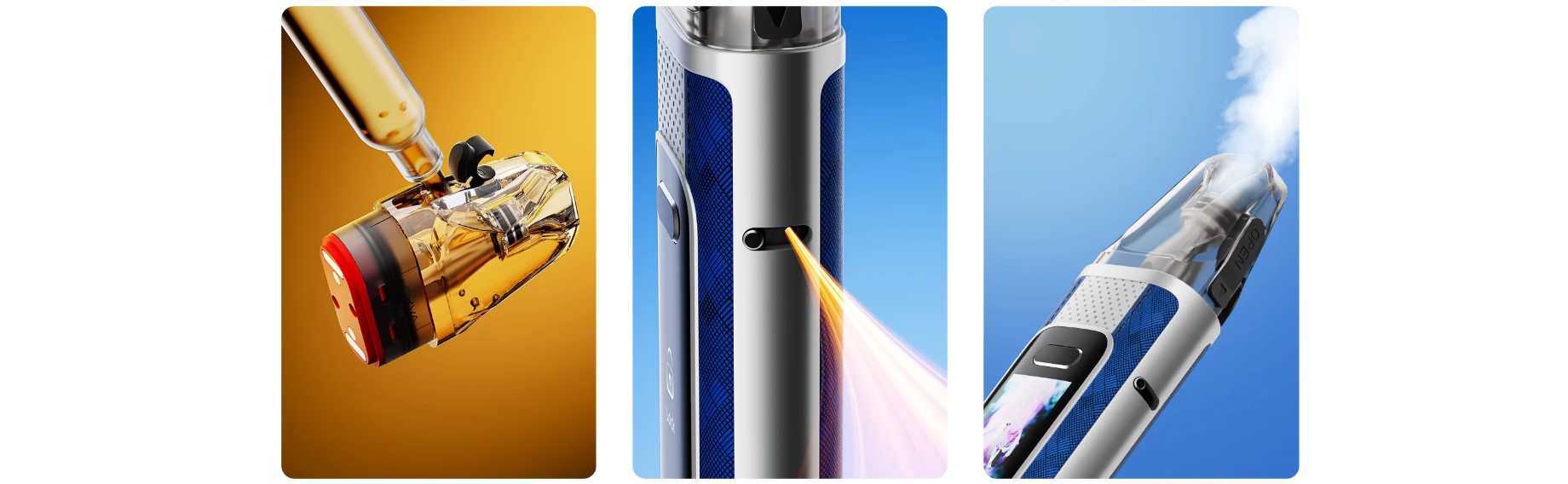 L’appareil dispose d’un écran HD de 1,05", qui affiche des informations telles que la puissance, le niveau de batterie, la résistance et permet de naviguer dans les réglages. Le chipset utilise le système Pulse d’Oxva, conçu pour maintenir une sortie stable et cohérente, même avec un niveau de batterie faible.