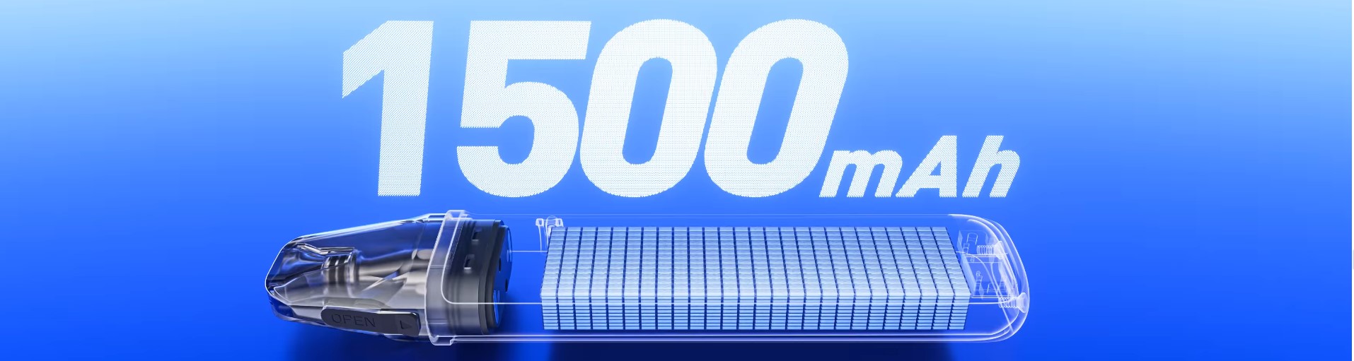 Le pod est fabriqué en alliage de zinc et en PCTG, avec un poids de 77,4g et des dimensions de 119,9 × 25,7 × 15 mm.