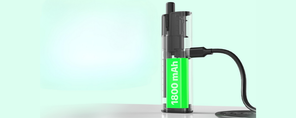 Le pod Vilter Max d’Aspire dispose d’une batterie intégrée de 1800mah rechargeable via un port USB-C (câble inclus dans le pack). L’activation peut s’effectuer automatiquement à l’inhalation, sans bouton.