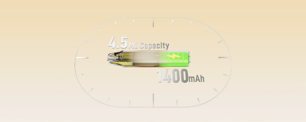 Les cartouches compatibles sont les réservoirs Vibe Dual Mesh, ainsi que les cartouches Vibe classiques. Elles ont une capacité de 4,5 ml et se remplissent par le côté, sans retirer la cartouche de la batterie.