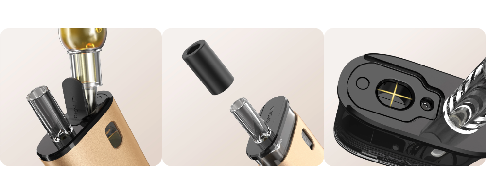 Le dispositif utilise des cartouches rechargeables SlimStick X d’une contenance de 2ml, avec un remplissage par le haut et un drip tip de type cigarette. La cartouche intègre une résistance de 1,0 ohm destinée à un tirage MTL. Un indicateur lumineux permet d’afficher le niveau de batterie (vert au-dessus de 20%, rouge en dessous). La cartouche SlimStick X en 1ohm est incluse dans le kit.